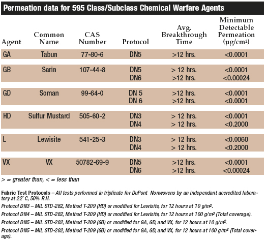 Tychem®, Tyvek®, and Viton® are trademarks or registered