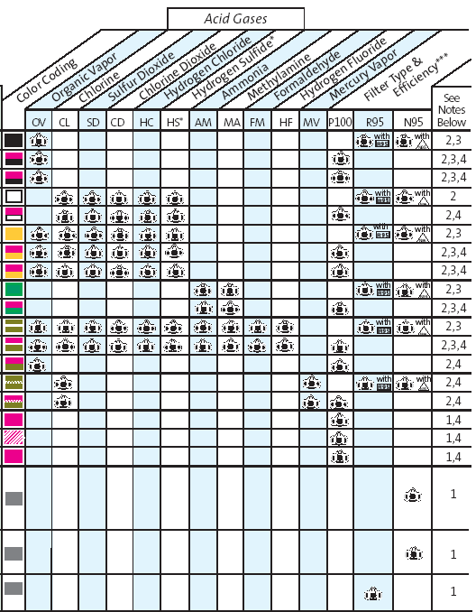 *Escape only. ** Effective against, but not NIOSH-approved for Iodine Vapor.