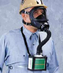 The Super-Size and Industrial-Size Gas Masks are a protective system consisting of a facepiece, breathing tube, harness, and chemical-sorbent canister. A large,ovalshaped aluminum canister attaches to the facepiece with a corrugated breathing tube. The canister is supported on the wearer’s chest with a nylon carrying harness. The Industrial and Super- Size Gas Masks aredesigned for respirator against protection Industrial-Size Gas Mask