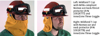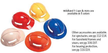 LightweightWildland T Firefighters’ Helmets are engineered to meet the requirements of wildland firefighters, who must combat fire in forest, field, and woodland environments. The Wildland T hat and cap—made of lightweight heat-resistant thermoplastic,for excellent protection against impact and penetration— are SEI-certified and meet or exceed all the applicable requirements of ANSI Standard Z 89.1 (Class E) 2003 and NFPA 1977–1998.Wildland T Helmet Assembly includes 4-point ratchet suspension,3 goggleclips, 4 reflective stripes,elastic chinstrap,and 3 Velcro strips for easy linerattachment inside the shell. Patented Glaregard™ underbrim helps to reduce glare.