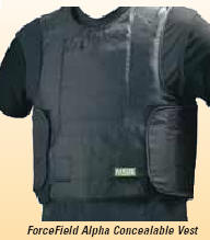 ForceField™ Concealable Body Armor ForceField Alpha Concealable Vest You can rely on MSA’s concealable body armor—the ForceField Alpha Concealable Vest—for maximum comfort without sacrificing ballistic coverage. Our sizing, style, and inventive design features will raise your expectations of what a ballistic vest can—and should—be. The Armor-Latch™ Closure enhances body coverage and boosts your confidence while contributing significantly to the comforrt of your full-wrap body armor. Your one-handed "forward pull" adjustment easily secures a front-to-back panel overlap, automatically aligning front and back panels for proper side coverage and comfort. The aligned solid closure also permits independent movement of the front and back armor panels, so you have greater mobility. |
