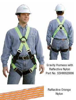 GRAVITY™ VEST STYLE HARNESS The Gravity Vest Style Harness design is the traditional choice for confined space rescue and fall arrest. The back D-ring ensures the user is in an up-right position, eliminating the need for shoulder D-rings and a spreader bar for confined space applications. Available in nylon, polyester, and reflective nylon. Tongue buckle leg straps available upon request. Meets ANSI Z 359.1 and OSHA standards, and is CSA certified. GRAVITY™ CROSS-OVER HARNESS The Gravity Cross-Over Harness is a multi-purpose full body harness. The unique cross-over design allows for adjustment of both the back and chest D-rings. The harness is suitable for controlled descent, positioning, ladder climbing, rescue, and fall arrest. Available in nylon, polyester, and reflective nylon. Meets ANSI Z 359.1 and OSHA standards, and is CSA certified. |