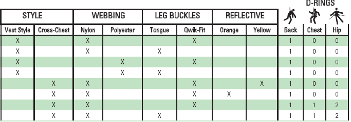 Nylon Harnesses are constructed with red/blue webbing, and polyester harnesses are constructed with red/black webbing. All harnesses listed above are Standard (STD) size. Additional sizes available. All harnesses listed above have Qwik-Fit chest straps. |