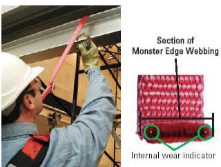 or cable version • Web version utilizes Monster-Edge™ Webbing with 12,000 pound minimum breaking strength Monster-Edge webbing is designed for increased abrasion resistance Internal wear indicator consists of two yellow threads that, when visible, alert a user as to when the lanyard should be removed from service dueto severe abrasion • Utilizes the Sure-Stop Shock Absorber to keep fall arrest forces below 900 lbs • Available in both single and twin-leg configurations • Meets OSHA regulations, ANSI A10.14 & ANSI Z359.1, and is CSA certified. |