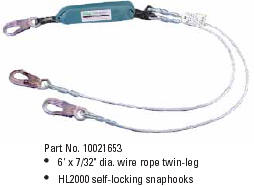 Shock Absorbing Lanyards with 1/4" Wire Rope, Vinyl Coated, Fixed Length