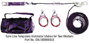 Sure-Line HLL Includes integral energy absorber 5/8" black nylon kernmantle rope Available in lengths up to 60 ft Rated for two workers Includes 2 cable anchor slings Includes storage bag
