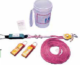 Dyna-Lineฎ HLL Highly visible 12 strand red rope will not hockle and minimizesfall distance due to its low stretch properties. Available in a Single Worker or Two Worker system. Available in lengths up to 200 ft. System comes in a handybucket for lengths up to 60 ft. Meets all OSHA requirements and ANSI A10.14 standards.