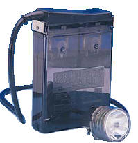 The state-of-the-art Ultralight Cap Lamp System has the brightest prefocused spotlight available (tungsten halogen) and provides exceptionally brilliant illumination of the work site. It has a long-life Luminator battery and a variety of battery charging equipment available. The two-inch diameter, state-of-the-art Ultralight Cap Lamp headpiece is made of high-impact polycarbonate and consists of only five major parts: • A one-piece polycarbonate bezel/lens (glass-laminated lens optional). • A computer-designed, prefocused bulb/ reflector assembly, featuring a high output, tungsten-halogen bulb, accurately positioned in the focal point of the reflector to assure a good spot. • A plug-in tungsten-halogen bulb emergency escape light. • A main housing with a printed circuit board for bulb and battery cable connections. • A three-position switch. A wire spring keeps the bulb/ reflector assembly properly resting against the lens to reduce vibration and mechanical shock. The prefocused bulb/reflector assembly eliminates the need for a focusing mechanism. Both the on/off switch and the charging contact are located in the headpiece housing. With only four major parts, inventory, replacement stocks and downtime are minimized. The tungsten-halogen bulb provides a white, bright light, achieved with little battery power consumption, because tungsten-halogen bulbs |