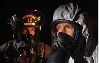 Firefighters do not always need SCBA protection, especially outside the immediate fire scene. Once the hazard has been assessed, air-purifying respirators (APR) may make the most sense for low concentrations of certain contaminants. With the new Ultra Elite CBRN Gas Mask,your department benefits from using a common platform facepiece for both APR and SCBA applications, allowing standardized training and eliminating redundant fit-testing. APR and SCBA facepieces should not be used interchangeably. For that reason, MSA is introducing the Ultra Elite CBRN Gas Mask for use in the fire service and to first responders. The facepiece has been trusted in the fire service for more than 10 years. In that time, the Ultra Elite has been field-proven toprovide firefighters with exceptional fit,comfort, and value. The MSA CBRN Canister meets or exceeds all performance requirements of the new NIOSH CBRN Standard by effectively removing harmful gases, vapors, and particulates so that the user can confidently breathe safely. The canister contains chemical sorbents and a P 100 filter to attract, retain, andneutralize contaminants. Safety • Super-soft black Hycar rubber exceeds the CBRN permeation requirements • Large lens with 83% unimpeded vision • Centrally located inlet port for secure, comfortable fit and feel • Centrally located mechanical speaking diaphragm for clear communications • Optional ClearCommand® Amplifier for increased communication capabilities Simplicity • Available with a 5-point rubber or SpeeD-ON® head harness • Identical sealing surfaces for both SCBA and Gas Mask facepieces—eliminating the need for redundant fit testing • Simplifies respiratory protection training program Reliability • The Ultra Elite facepiece is fire-service proven, with over a decade of trusted use • MSA has been making gas masks since World War I • Largest supplier of gas masks to the law enforcement market